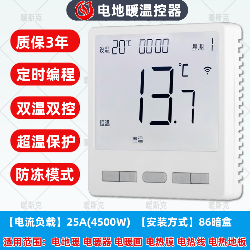 【电地暖】NSK-6619大屏编程按键(暗装)25A-电暖温控器-温控器-产品商城-石墨烯地暖厂家