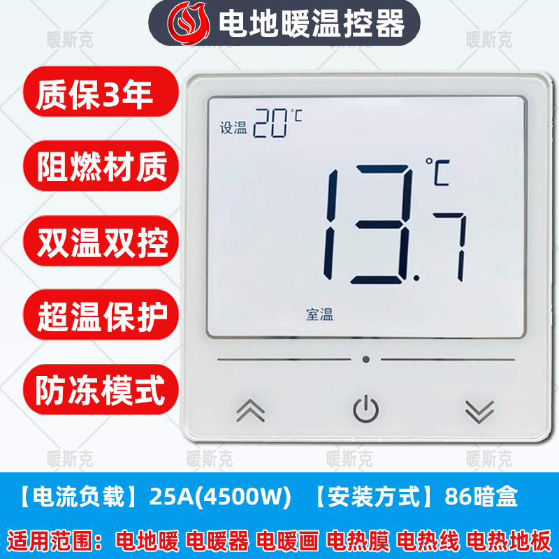 NSK-617【电地暖】大屏触摸三键(暗装)25A-水暖温控器-温控器-产品商城-石墨烯地暖厂家